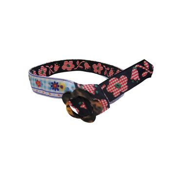 Little girl's Hadley Pollet belt with a tortoise zinnia buckle.