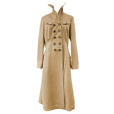 The Selena trench coat presents a refined new take on an essential wardrobe piece. Crafted in cotton, it is enhanced by an amazing bow detail on the back that's accompanied by our trim, making the back view a delightful surprise. The incredibly flattering torso construction highlights the waist, while topstitched details and pointed pockets with buttoned flaps create a sophisticated look. The trench coat may be paired with any piece for a casual or elegant look.