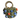 - Floral embellished handbag with orange and blue flower appliqués