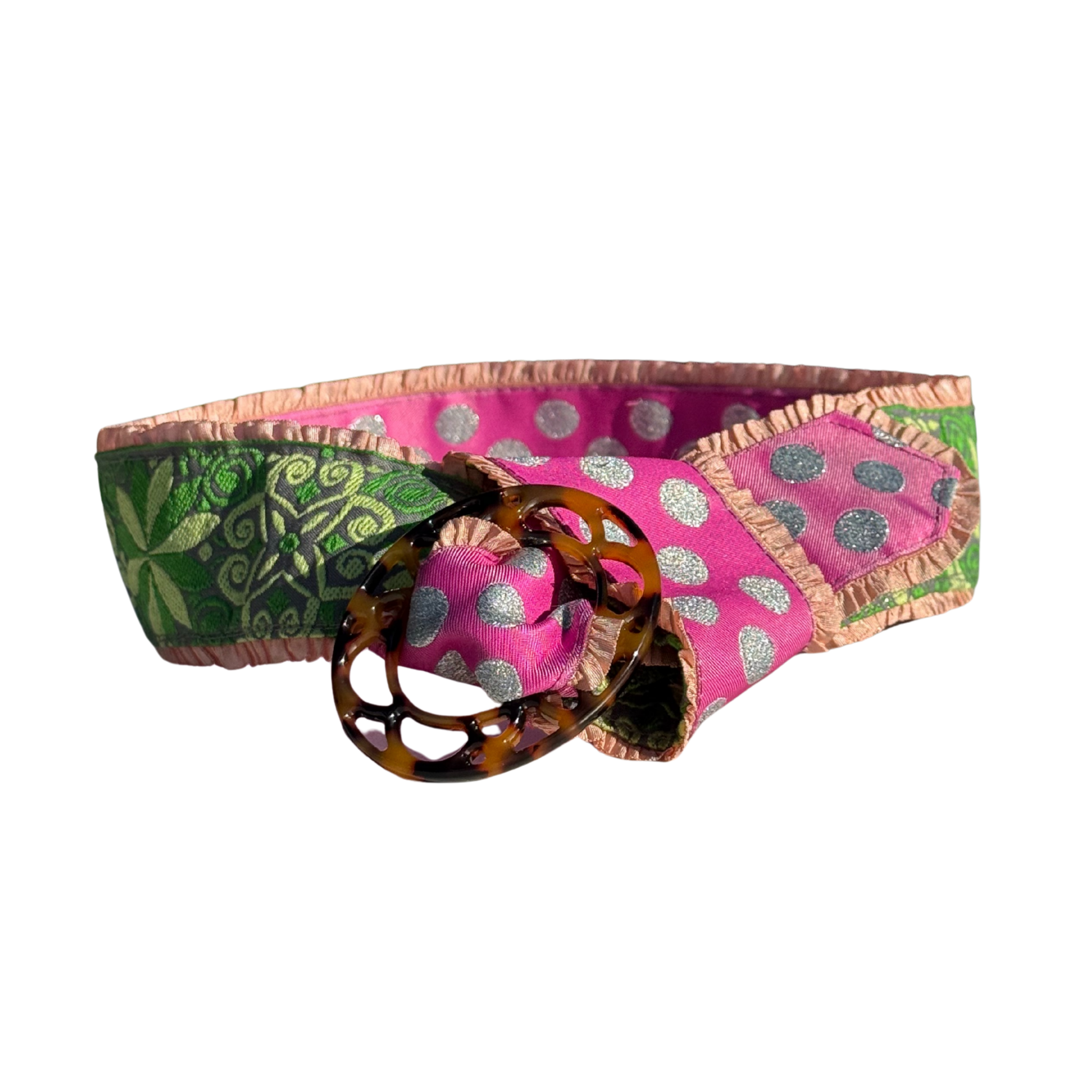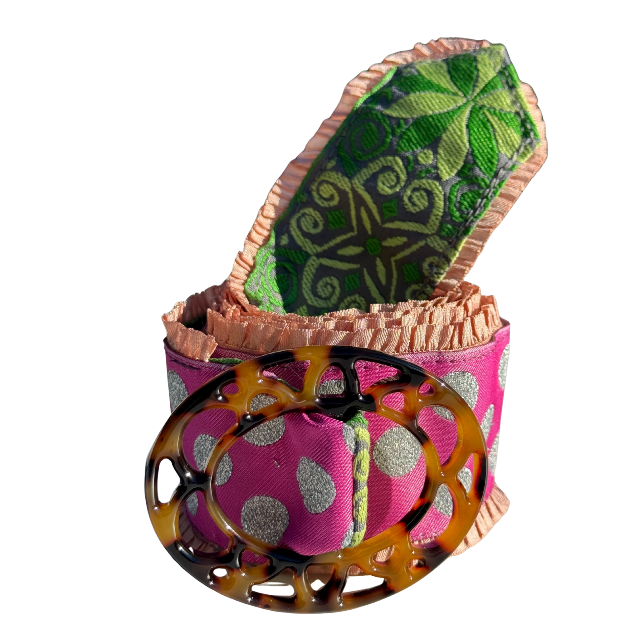 Description: Meet the Hadley Pollet Pink Sparkles Polka Dot Belt — your new favorite statement piece that flips with your mood. One side dances in playful polka dots, the other sparkles with starry charm, and ruffled edges add a touch of whimsy to every outfit. Designed for women who love versatility and joy, this reversible belt is perfect for elevating casual looks or adding flair to special occasions.