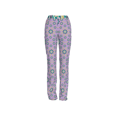 Add a touch of celestial charm to your everyday wardrobe with the Lavender Starry Night Pants, an exclusive and artistic creation by Hadley Pollet . These pants feature a soft lavender base adorned with a whimsical pattern of star-like shapes in shades of blue, green, and white, creating a dreamy, playful aesthetic.